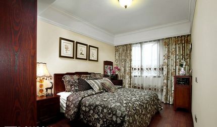 私密生活空间处理,则是各具特色。女孩房以白色系为基调,白色木质家具与墙面的碎花壁纸,以及浪漫粉红色的布艺,相眏成趣,整个房间显得纯洁、休闲、甜美、温馨。父母房则在欧式风里搭配了沉稳的中式家私,亦见和谐,毫无唐突之感,非常适合中老年人生活品味。