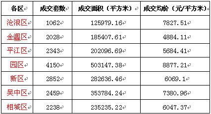苏州市2008年上半年度(截止6月24日)苏州市区住宅类房源成交17035套,成交面积:1881492.1平方米成交均价:7021.77元/平方米,各区域具体成交信息见下表: