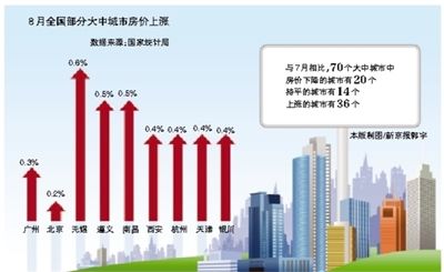 新京报讯 (记者蒋彦鑫)昨日,国家统计局发布8月70个大中城市住宅销售价格变动情况。全国70个大中城市中,36个城市房价环比出现上涨,但涨幅较低,均未超过0.6%。
